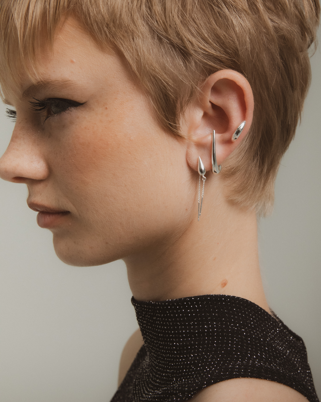 We recommend styling it in the second position in your ear stack, or try stacking them together in a mix of silver and gold tones.