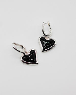 Our iconic Whitney Heart Charm Earrings are back, revisited with a modern, fluid design and smooth cabochon-cut, natural onyx gemstone in our signature heart shape. The Whitney Heart Charm Earrings have been a best-selling style for F+H Studios for almost a decade and are now available in an updated design for modern styling.