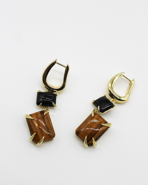 The Double Drop Claw Earrings are an F+H essential. We have updated one of our favourite designs with cabochon cut natural onyx and tiger's eye gemstones for classically-cool styling. The custom-cut gemstones are set in our signature over-sized claw settings and suspended from an easy-to-wear hoop, making these earrings perfect to wear from day to night.
