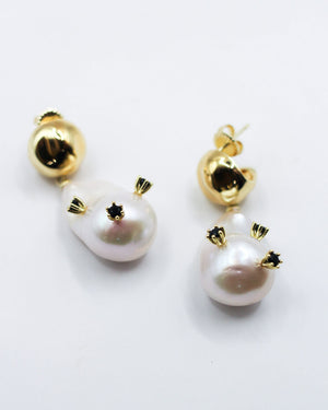 Not your average pearl earrings, our Prickly Pearl Studded Earrings feature a large freshwater baroque pearl, suspended from our signature hammered ball studs and adorned with prong set onyx gemstones to add a little edge. These pearl earrings will make an eye-catching addition to your resort wardrobe with their modern design and handcrafted details.