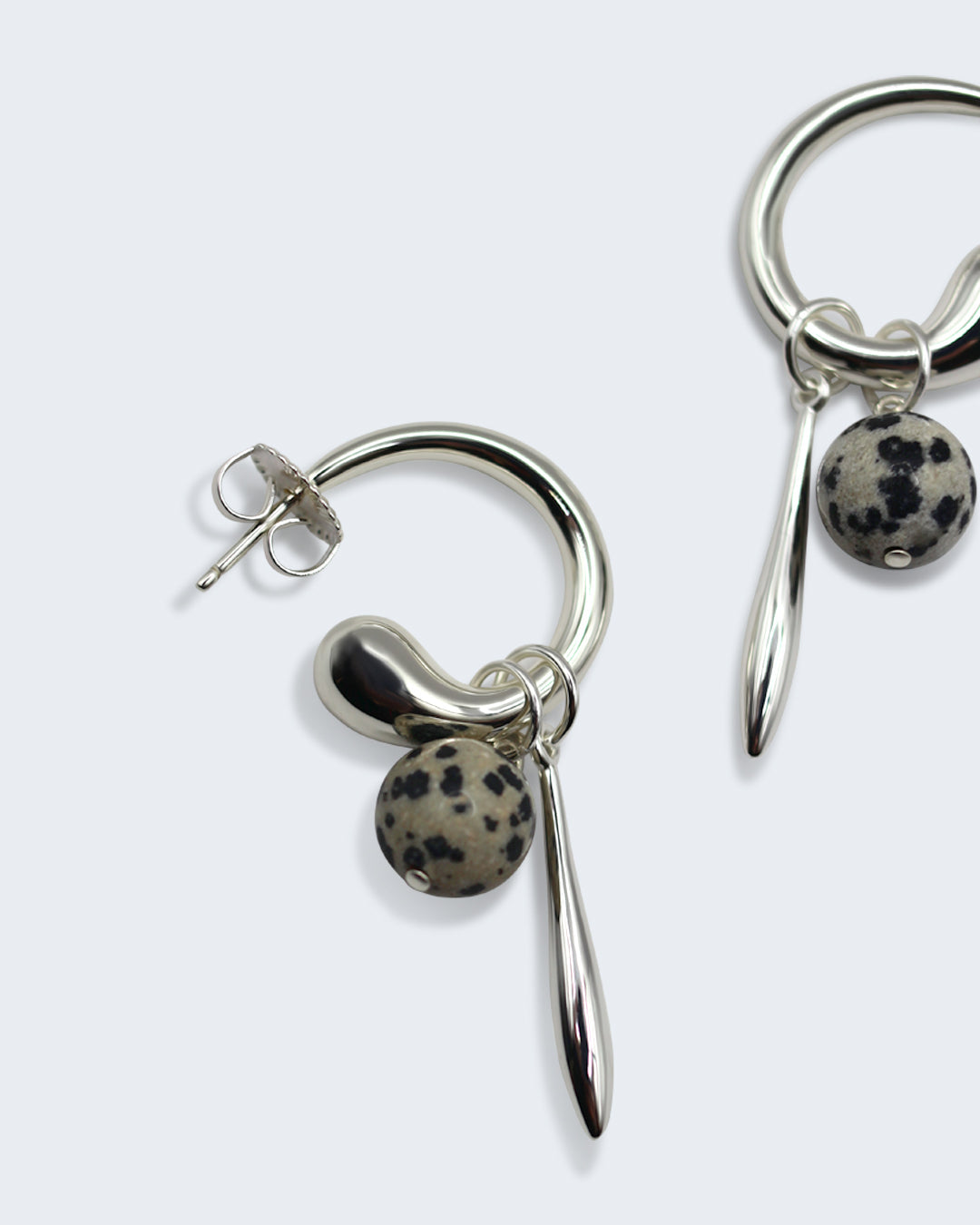 Swirl Statement Charm Earrings - Dalmatian Jasper