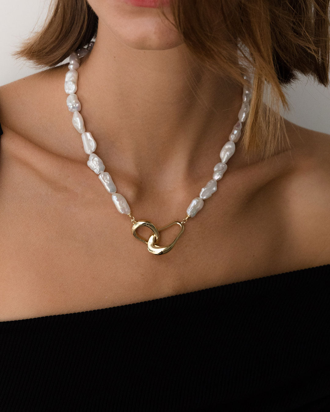 BEACHED PEARL + SHELL STATEMENT NECKLACE