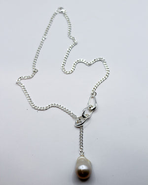 The Linked Pearl Lariat Necklace is a modern styling essential. Featuring classic curb chains and our custom made links, adorned by a baroque freshwater pearl to create a timeless lariat necklace.