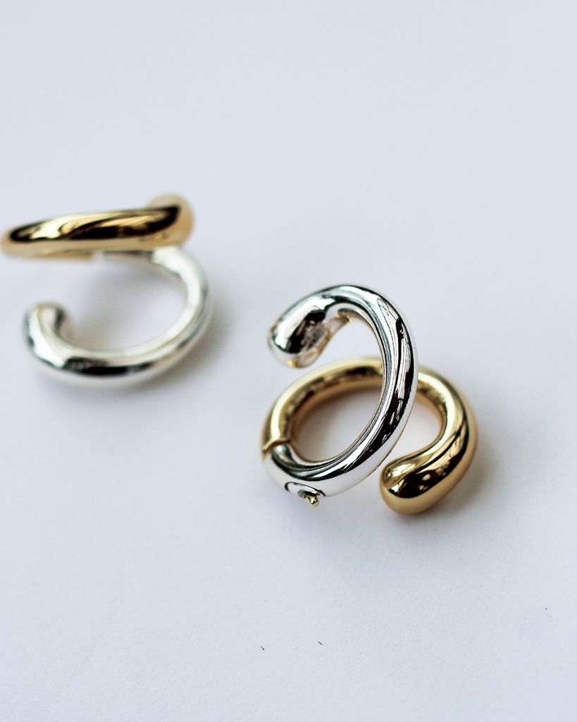 We suggest styling this designer earring with other fluid shapes from our F+H earring collection, while also embracing the mixed metal concept by layering it with other gold and silver studs, ear cuffs and huggies.