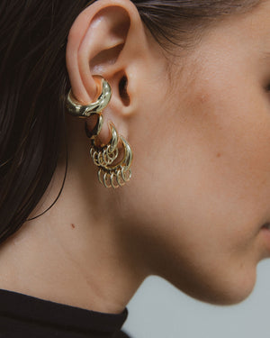 The Pierced Hoop Earrings are available in two sizes, which look great when stacked together for a stronger styling statement. We also suggest layering these earrings with other handcrafted huggies and hoop from our F+H Studio earring collection.