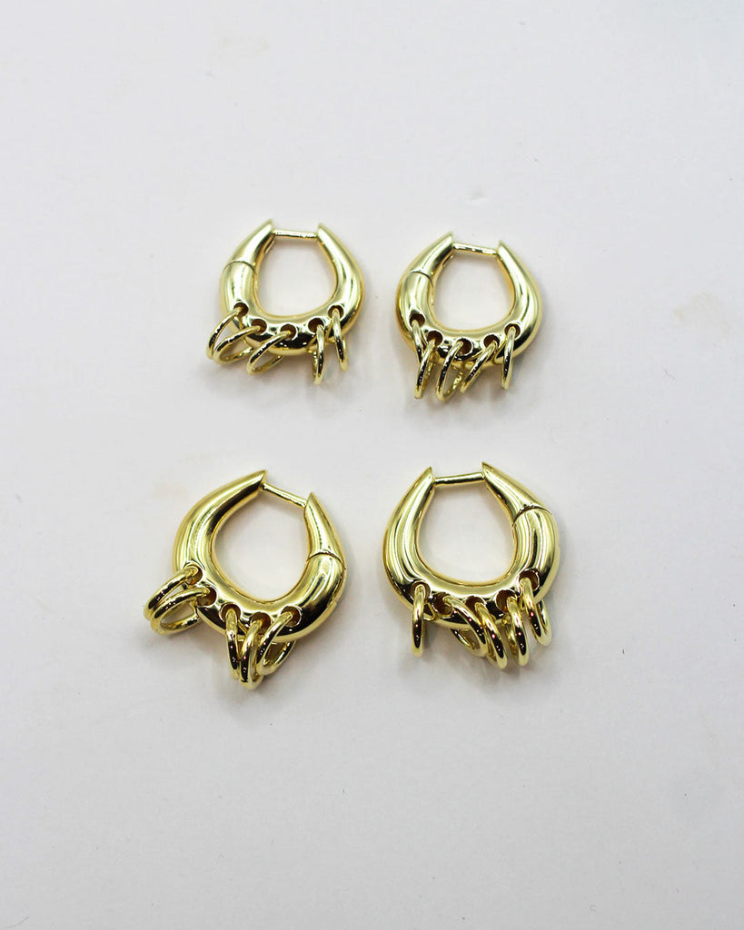 Like a regular hoop but way cooler, our Pierced Hoop Earrings are adorned with piercing rings to elevate your styling with a minimalist punk aesthetic.