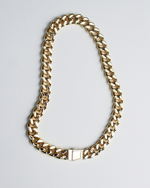 La chaîne gourmette Attitude Statement est un collier moderne et une pièce de style audacieux fabriquée à partir d'une chaîne gourmette de qualité et de notre fermoir boîte sur mesure pour un style luxueux et résistant.