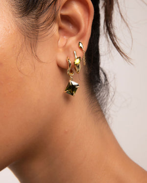We love peridot charm gemstones for a subtle pop of colour, try styling this huggie earring with other peridot adorned pieces from our collection for tonal styling.
