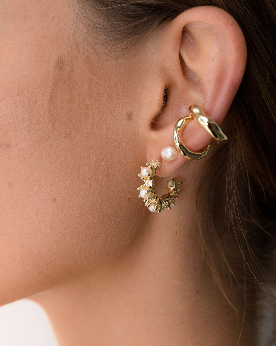 The Paris Is Burning Hoop Earrings are pretty but tough with a unique setting. Featuring freshwater pearls and our signature spike prong nano-gemstones set in an offset earring pattern for a modern styling statement.