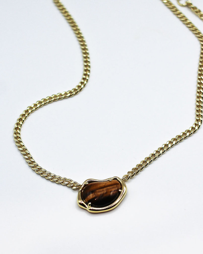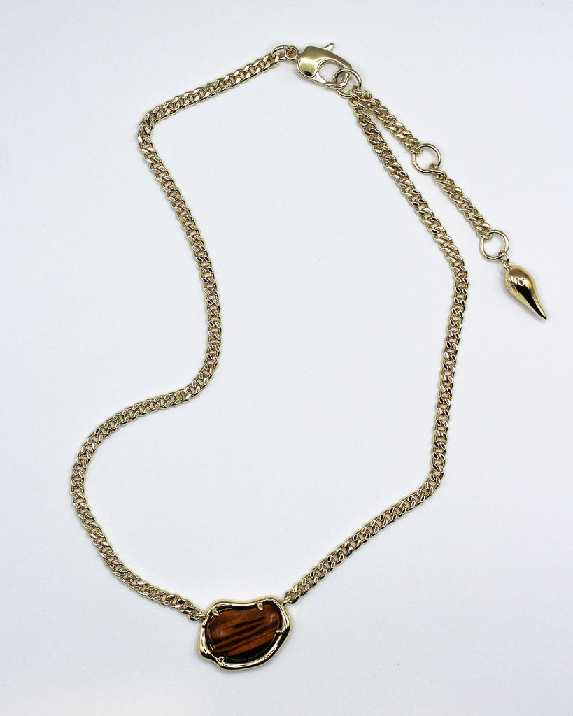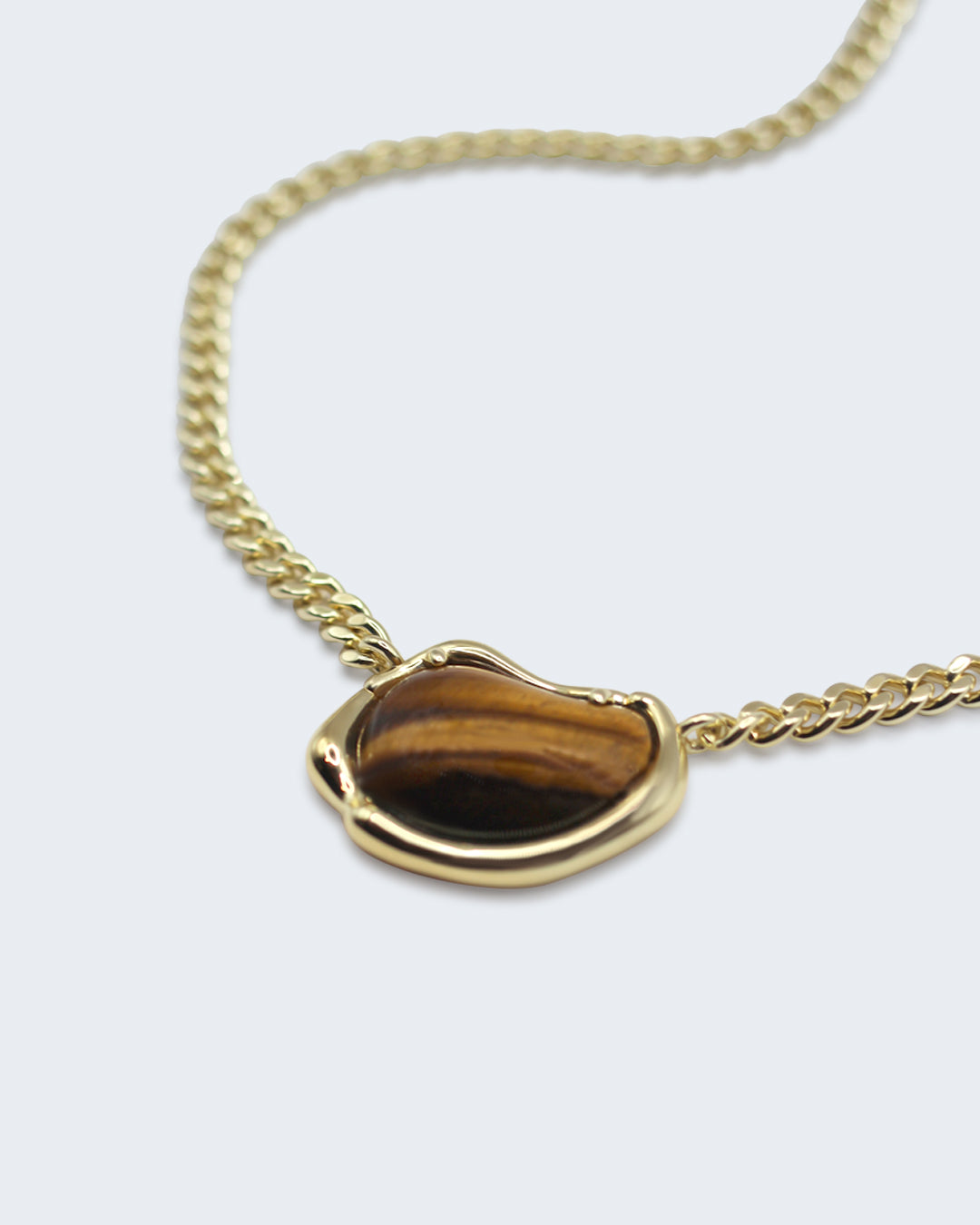 Our Bean Gemstone Chain Chokeris an easy way to add tonal colour to your styling with a custom-cut cabochon tiger's eye gemstone suspended from a classic curb chain.